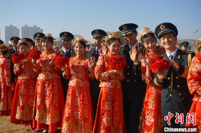 “光棍节”东风快递专送狗粮!火箭军116对新人举行集体婚礼(图)
