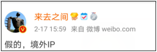 这一情况也得到了新浪微博站方的证实。新浪微博的CEO @来去之间 就在自己的个人账号上发帖表示,这个账号是假冒武汉病毒所的人员,其IP地址也是来自境外。