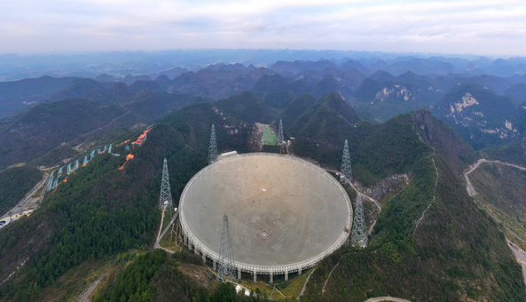 被誉为“中国天眼”的500米口径球面射电望远镜。新华社记者 欧东衢 摄