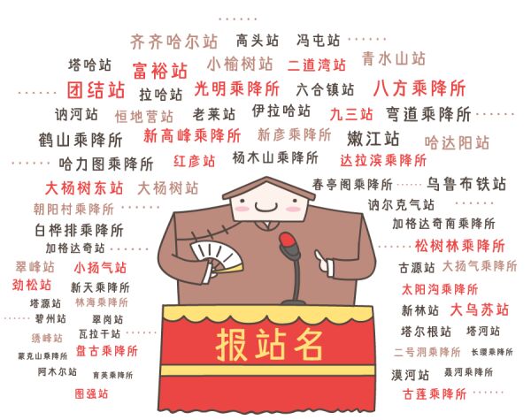 齐齐哈尔至古莲的6245/6246次旅客列车运行于嫩林线,全程923公里,共有65个站所,最低票价1元,想要一口气把站名念完,绝对是个技术活。