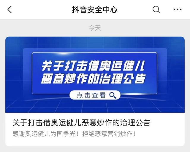 抖音呼吁要理性为奥运健儿加油。