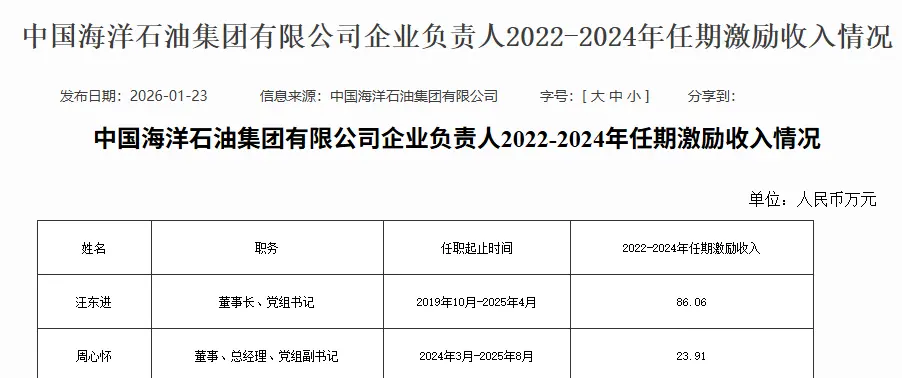 长安街知事(微信ID:Capitalnews)注意到,根据上述公告,此次公布激励收入的央企共有87家。其中,部分央企负责人2022-2024年任期激励收入如下——