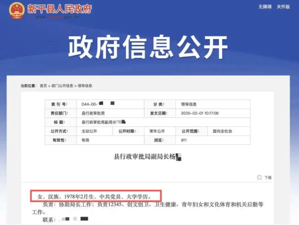 近日,我县杨雯同志任前公示信息发布后,有网友质疑与所在单位政务公开信息不一致。