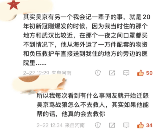 吴京曾经默默做过的事开始浮现:长期做慈善、帮助普通人、提携后辈、在执导的电影里屡次为强大的女性角色提供一席之地、助力中国科幻电影人追梦……这些曾经被淹没的信息,在作品立住之后,慢慢有机会被大众看见。