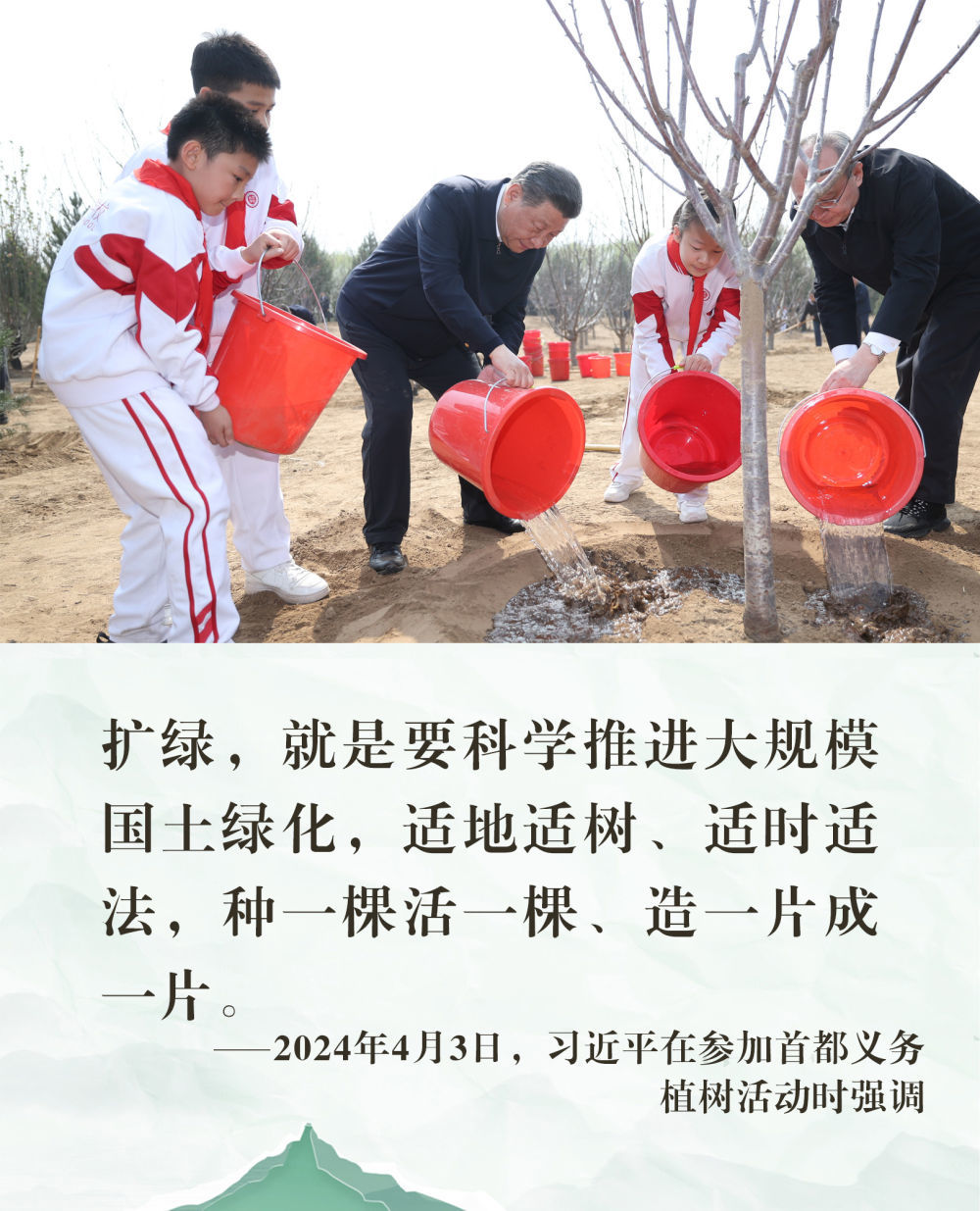在参加义务植树活动期间,习近平总书记多次强调实事求是、因地制宜、科学规划,真正做到为人民种树、为群众造福。