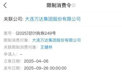据中国执行信息公开网,因1.86亿元的执行标的,71岁的王健林与他一手缔造的万达集团,近日被兰州市中级人民法院下达了限制消费令。