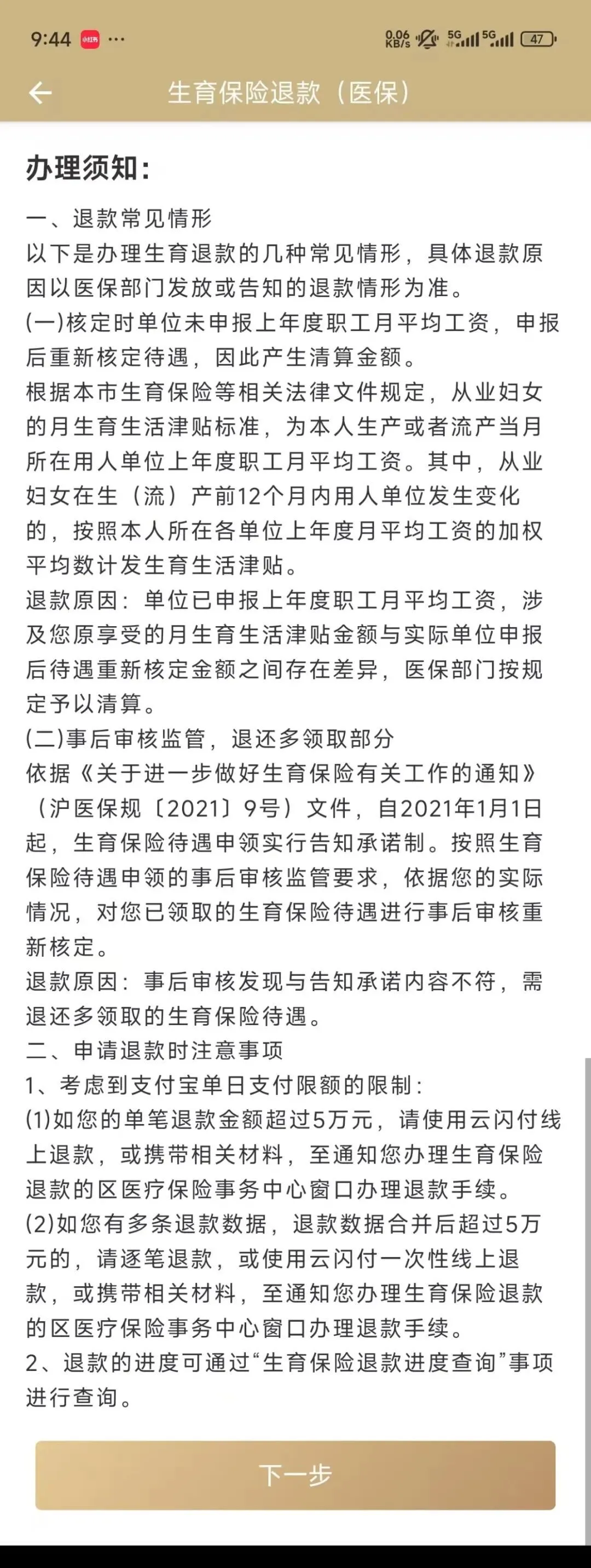 有网友晒出的通知短信说明了退款理由,“上海医保部门根据您所在单位申报的上年度月平均工资,重新核定您已申领的生育生活津贴,需要您退还多领取的部门津贴”,并称可通过“随申办”app办理退款手续。