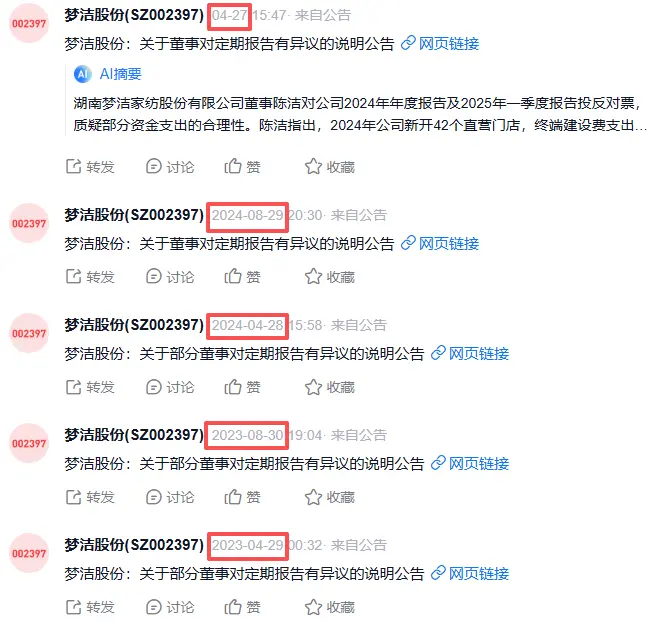 据猫崽了解,陈洁并非首次对梦洁股份的财报提出异议。