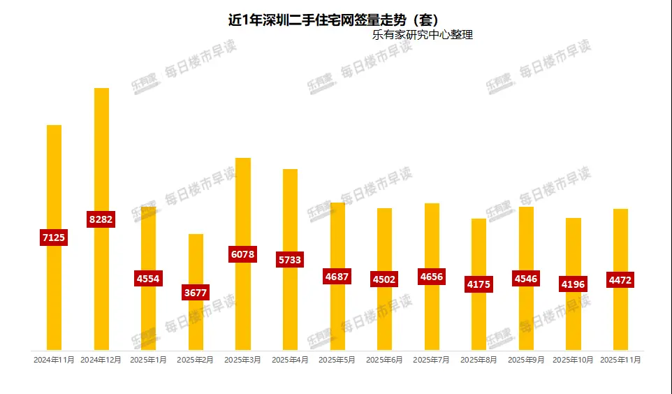 进入2025年行情回落,11月份二手房单月网签量为4472套。
