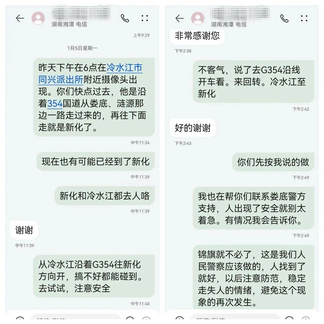 1月5日,事情迎来转机。吴浩通过娄底警方发现,前一日下午王安顺在冷水江一派出所附近出现过!他当即通知家属,“他是沿着G354国道从娄底、涟源那边一路走过来的,再往下面走就是新化,现在也有可能到了新化。沿线从冷水江往新化方向开,搞不好能碰到!”