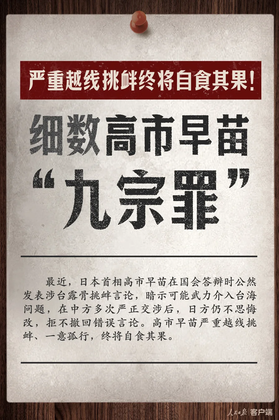 人民日报细数高市早苗“九宗罪”