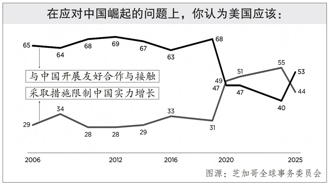 上海外国语大学中英人文交流研究中心主任、清华大学国际安全与战略研究院中国论坛特邀研究员高健告诉《环球时报》记者,从民调数据来看,2023年至2025年,对中国持负面看法的美国民众比例一直处于高位,只是程度有所缓和。皮尤研究中心2024年和2025年的民调数据显示,对中国持“不喜欢”态度的美国受访者比例分别为81%和77%。