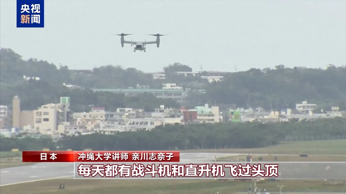 冲绳大学讲师 亲川志奈子:每天都有战斗机和直升机飞过头顶,军机的轰鸣声成为了日常。算下来,冲绳每年平均都会发生几次坠机、零件掉落等事故。冲绳的军事化正不断加剧,给当地居民带来了恐惧和不安。我认为必须阻止这种情况继续恶化。