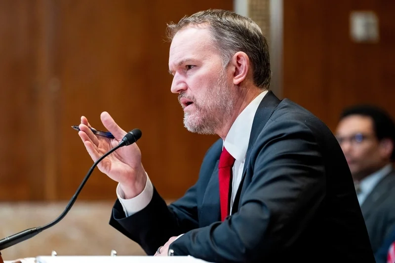 2025年12月9日,美国贸易代表贾米森·格里尔在华盛顿特区美国国会大厦举行的参议院拨款委员会听证会上,就贸易代表办公室2026财年预算发表讲话。 IC Photo