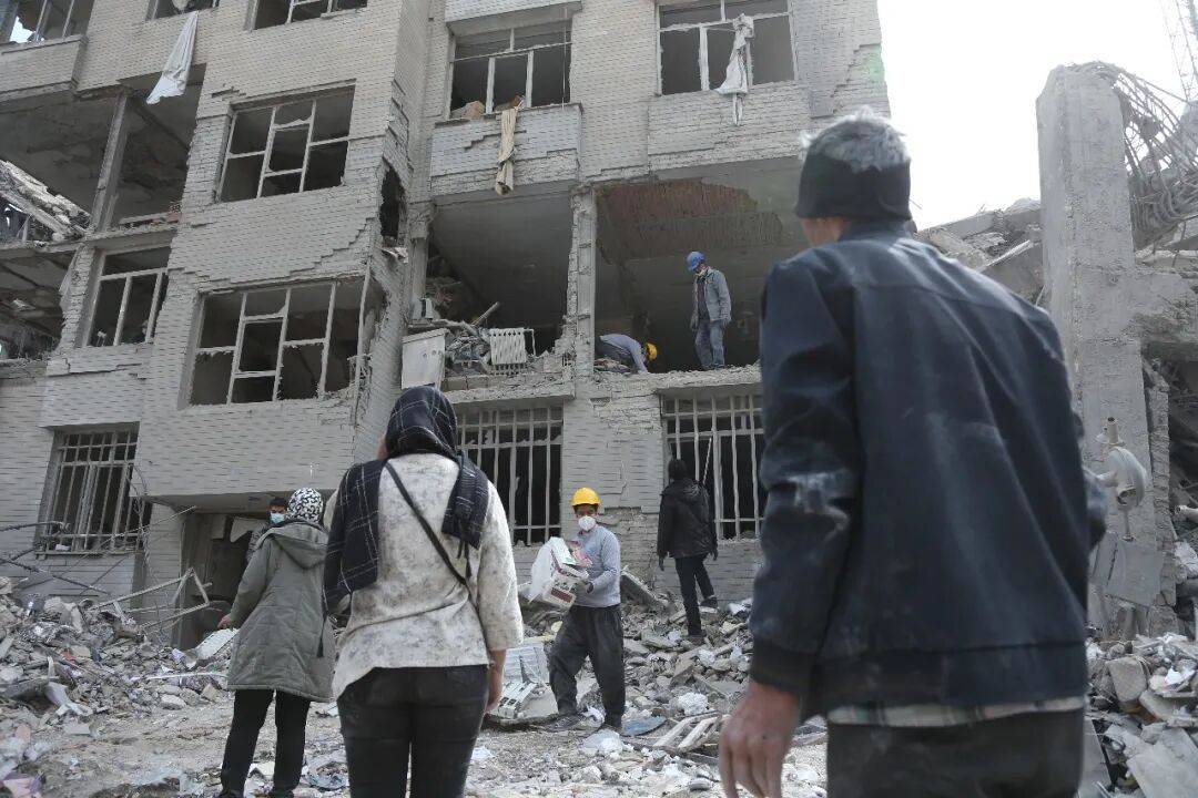 2026年3月12日,在伊朗首都德黑兰,市民从损毁的建筑里搜寻生活用品。新华社记者 沙达提 摄