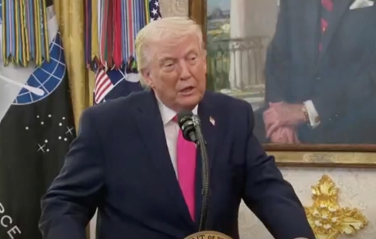 当地时间3月24日,特朗普在椭圆形办公室发表讲话。 图源:WION电视台视频截图