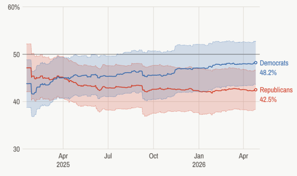美媒指出,共和党守住众议院多数席位已面临严峻挑战,失去参议院控制权的风险显著上升。与之相对,民主党动能上升,在“国会意向投票”中普遍领先约3%至10%,不仅具备夺回众议院的现实机会,也重新进入参议院竞争区间。