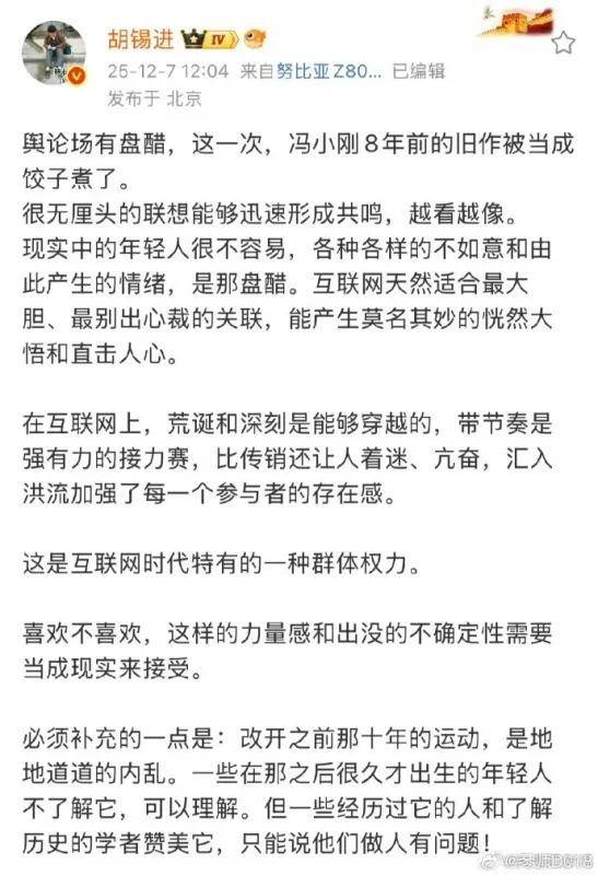 我寻思我是在分析互联网情绪投射,用词也很谨慎,只是玩了几个梗,还用不着删我的文吧。