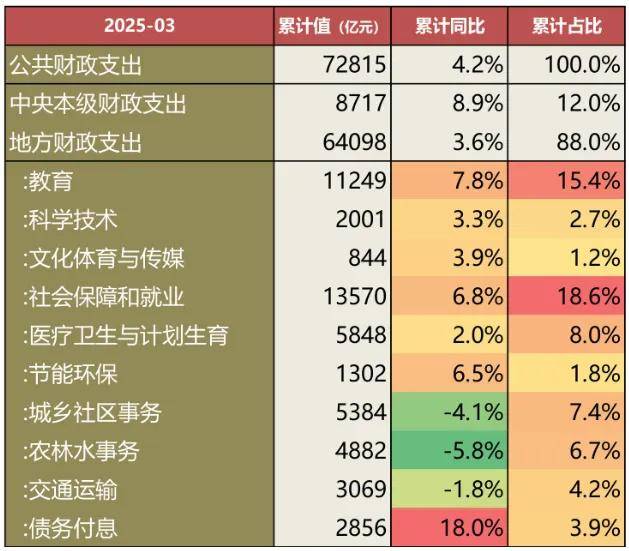 2025年,地方财政面临严峻挑战,“紧”字成为预算表的关键词。今年一季度数据显示,全国一般公共预算收入60189 亿元,同比下降 1.1%,而支出逆势增长4.2%,收支缺口扩大至 12626 亿元。若将政府性基金纳入计算,广义财政赤字率在一季度已抬升至 4.8%,创下近年来新高。