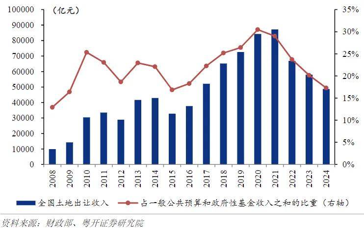 2024年全国土地出让收入为4.87 万亿元,占GDP比重降至 3.6%,较 2020 年峰值腰斩。2025年预计再降 16%,跌至 4.1 万亿元。报告中提到“地方政府性基金收入占比十年最低”,这反映出土地财政的落寞。更棘手的是,土地收入下滑与债务到期高峰重叠。2024—2026 年,地方专项债年均到期规模超1.2万亿元,土地出让金曾是偿债的“安全垫”,如今却变成了“漏水的桶”。