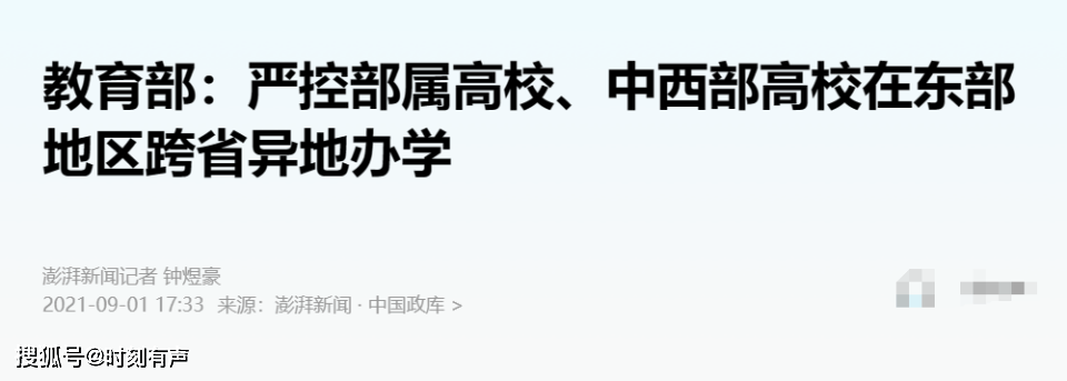 随后,教育部果断喊停,严控中西部高校跨省异地办学,同时“不鼓励东部高校从中西部、东北地区高校引进人才”。