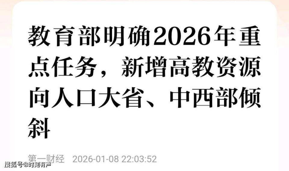 同时,教育部将推动新增高等教育资源向人口大省和中西部地区倾斜,健全东中西部高校对口支援机制,加快推动中西部高等教育振兴。
