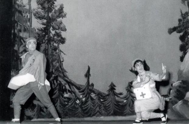京剧现代戏《林海雪原》中少剑波(左,李少春饰)与小白鸽(右,杜近芳饰)的剧照