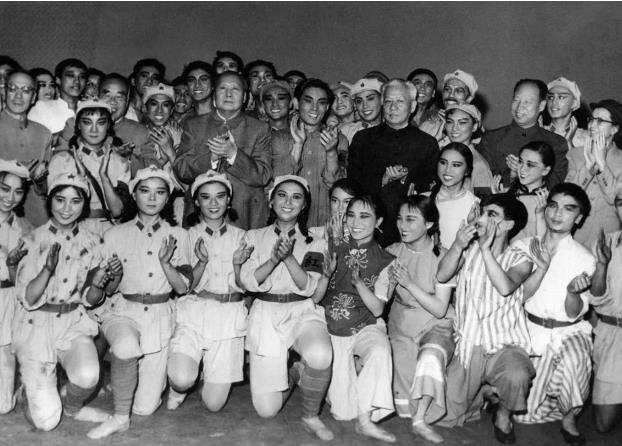 毛主席观看红色娘子军之后和剧团的合影