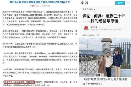 7、2021年,襄阳地头蛇张德武因犯下骗取银行资金拿去放高利贷、通过非法拘禁等方式催收债务、指使刑满释放人员强拆居民楼、安排20辆车召集800多人冲击襄阳市中级人民法院等罪行遭到检察机关起诉。张德武重金聘请罗翔和何兵为其辩护。经过二人的运作,张德武涉黑罪名被撤,最终法院认定他其余5项罪名(寻衅滋事、非法拘禁、串通投标、高利转贷和聚众冲击国家机关)成立,判处张德武8年半有期徒刑。