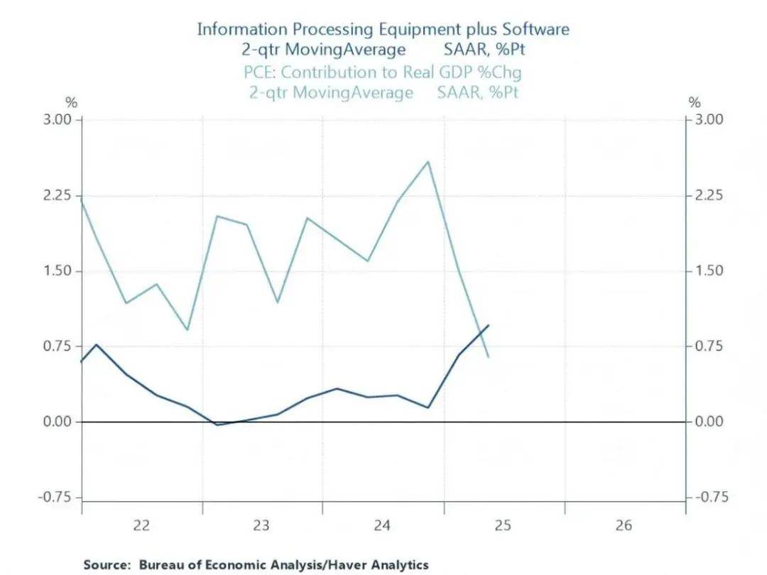目前,企业在人工智能基础设施上的支出对美国GDP增长的贡献已经超过家庭消费,这种前所未有的倒置格局表明,当前美国的经济增长更多依赖投机性投资,而非真正的生产性扩张。这种动态会压低利润率,而一旦投机资本掉头撤离,经济随即会转入下行周期。