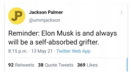 同时,在这个时候,公众人物对于虚拟货币的影响也上升到了前所未有的中心化的程度,比如说就在最近,已经发生了好几次类似的事情。特斯拉总裁马斯克的一个推特,就能导致虚拟货币市场出现巨大的波动,而同时,他也大量持有各种虚拟货币,在这个过程之中,他有多少盈利,是个很难说的事情。但是不管怎么说,这种现象显然和去中心化背道而驰。