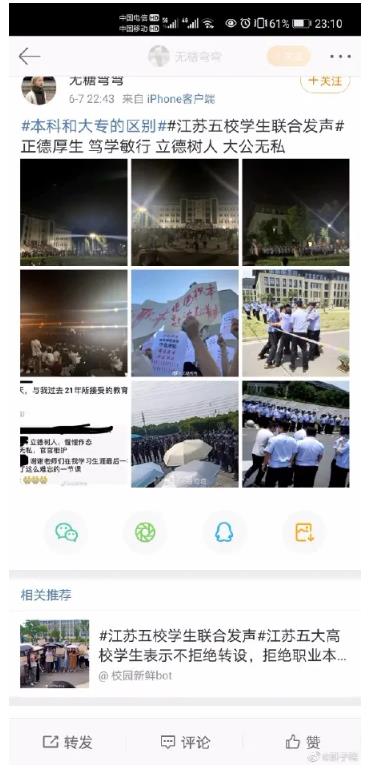 #江苏五校学生联合发声#这个微博话题,很快引起了关注,但后来不知道什么原因,竟然被删除了!