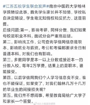 对于学生的这些疑惑、困惑和担忧,小编希望我们的有关部门能作出合理的、规范的说明,能给这些同学交底,保证他们进入社会之后,不因这次转设受到影响。