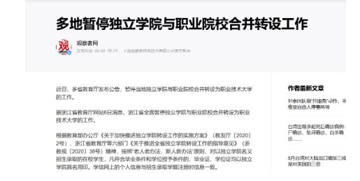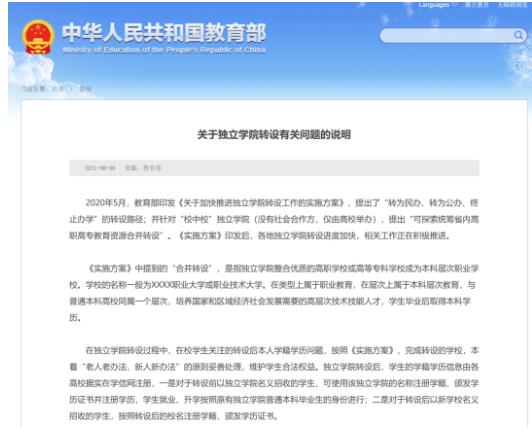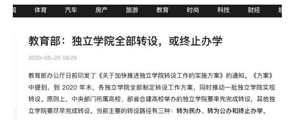 于是,在多方的反复扯皮和懈怠之下,独立院校转设成为了始终没有落地的靴子和年年狼来了的故事。直到2020年5月15日,靴子终于落地了。