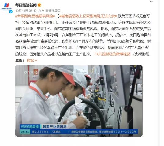 在9月初日均新增1.3万例的高峰期,越南服装厂的上工率不到70%,这还是在加薪20%的前提下。