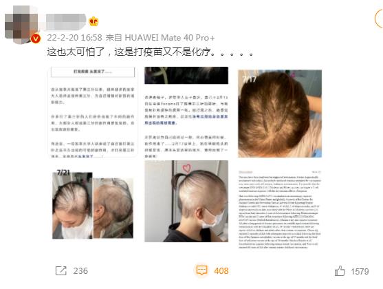 近日笔者在微博上看到一位大V博主转发了加西周末发过的一篇文章,里面讲述了几位女子在接种辉瑞疫苗第三针后出现的一种不良反应——斑秃、脱发,对于还较为年轻的女子来讲,这种不良反应是挺让人苦恼的。
