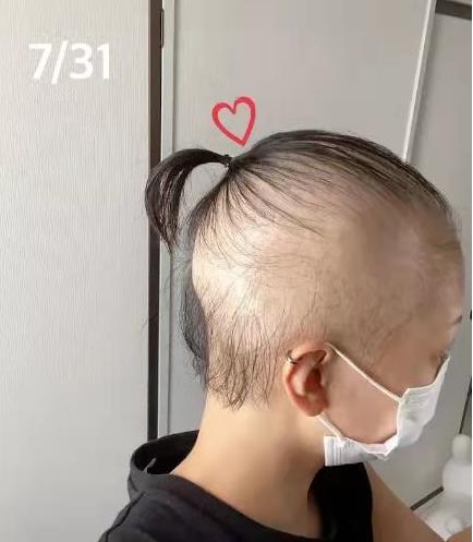 这位日本女子是在2021年6月底接种了第一针莫德纳疫苗,7月1日她起了荨麻疹,这应该是一种我们见得比较多的不良反应吧。7月2日洗澡时她发现掉发超过正常量,到7月7日,她的头上出现了3块斑秃区域,洗澡时掉发更多了。之后,掉发情况进一步恶化。到7月27日时,感到掉发停止的她不顾周围人的劝阻,接种了第二针莫德纳疫苗,结果就是又开始严重掉发了,到7月31日时,几乎变成了“光头妹”。