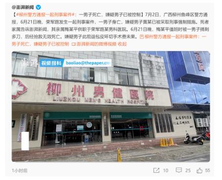 6月21日晚,柳州,一名患者持刀将正在上班的医生梅某平给杀害。患者到医院,因医疗费用问题,与医院进行沟通,院方推卸责任,说自己不退钱,你去找医生,之后病人去外面买来水果刀,将梅某平医生给捅死,而梅某平医生正是给该病人开单的医生(并未参与做手术)。