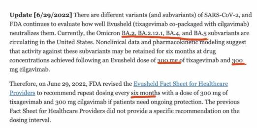 美国FDA(食品药品监督管理局)在6月底给出的应对方案则是药量翻倍,即tixagevimab与cilgavimab各接种300mg。