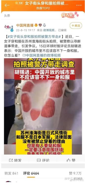 8.15这个特殊日子,胡锡进又跳将出来,将两个话题拉上了热搜,借“和服”一事,制