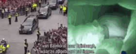 (动图为荷兰节目,左为女王灵柩车队,右为节目组制作女王棺材内摄像头直播,欧洲人对女王态度可见一斑)