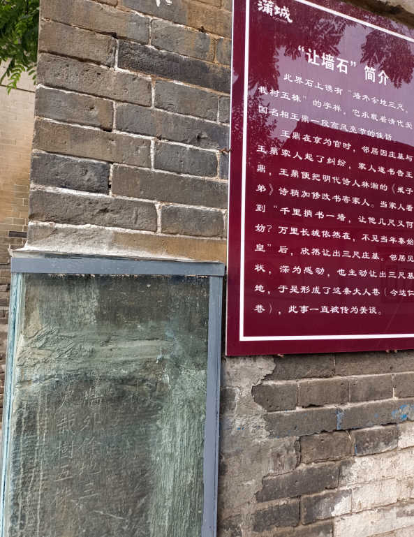 王鼎看到信后,将明代诗人林翰的《戒子弟》诗稍加修改寄给家人:“千里捎书为一墙,让他几尺又何妨?万里长城依然在,不见当年秦始皇。”王鼎的家人看到这封信,立马明白了他的意思,主动向西让出三尺。邻居见此甚为佩服,也主动向东让出三尺。后来这条巷子便被称为“达仁巷”。