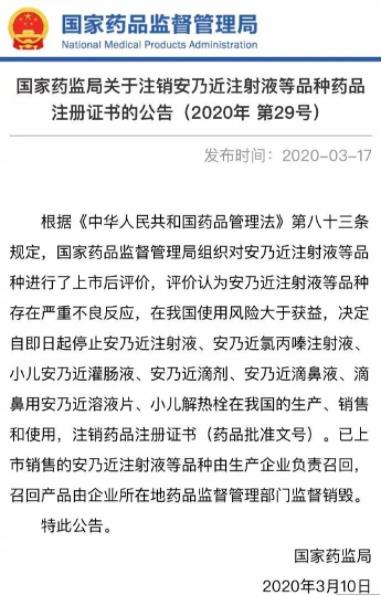 然而,这其中竟然还有早就被国家药监局给注销的药,那就是曾今的退烧神药“安乃近”。
