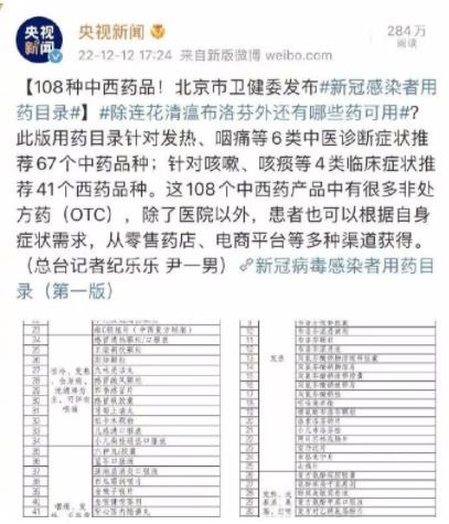 举例来说,某直辖市卫健委推荐的108中中西药产品,相信许多读者都在各个权威媒体看到过,有的文章叫《108种!官方发布新冠感染者用药目录(第一版)》,的确有够权威。