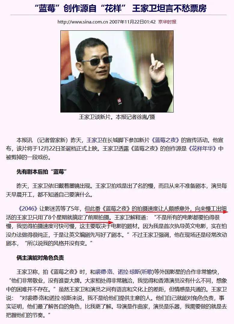 《一代宗师》中的宋慧乔,不堪忍受没收护照的待遇,天天闲等吃泡菜泡面的拍摄流程,不得不中途打道回府。吃老本的《蓝莓之夜》在海外拍摄,又有国际明星坐镇,“无奈”先写剧本再拍,仅用八个星期完工,被人质疑是都太不“王家卫”了,还狡辩为“风格”没有变。