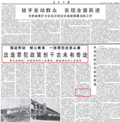 人民日报1959年9月20日第2版《强迫劳动 耐心教育 一批罪犯改恶从善 改造罪犯政策创千古未有奇迹 群众反映说:旧监狱把好人折磨死,新监狱把坏人改造好》