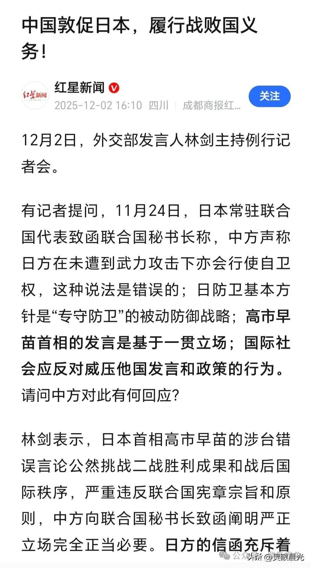 鄙人看到“红星新闻”官网发布的外交部要求“日本履行战败国协议”的报道,深感鼓舞人心,认为“打蛇打七寸”,外交部找到了“日本军国主义猖狂的问题结症”,但还感觉说得不够彻底与全面,故特写此文表达鄙人的一孔之见,仅供大家参考。