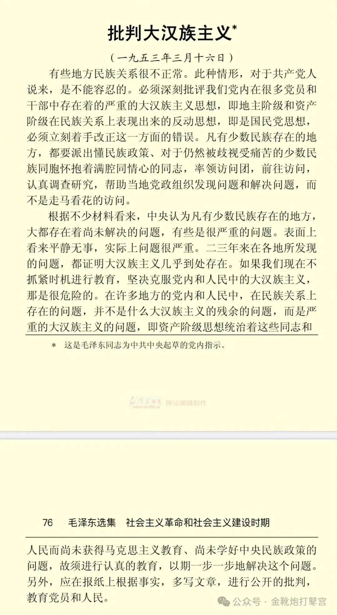 如果这还不够直白,那么自革命战争时期至建国之后始终贯穿于党的民族战线的基本思路——既要反大汉族主义,又要反地方民族主义——则毫无保留的展现了推动时代进步的共产党人其史观正义。