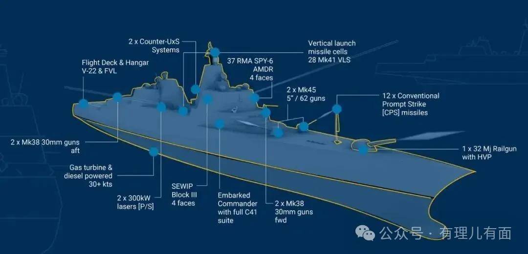 还会装上高超音速武器、轨道炮、巡航导弹和激光武器,妥妥的“未来战舰”配置。