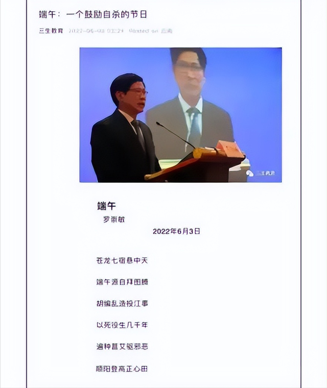 下面这位虽然上热搜的次数没有前两位多,但一上热搜,就雷倒全社会。这就是原云南省教育厅厅长罗崇敏先生。